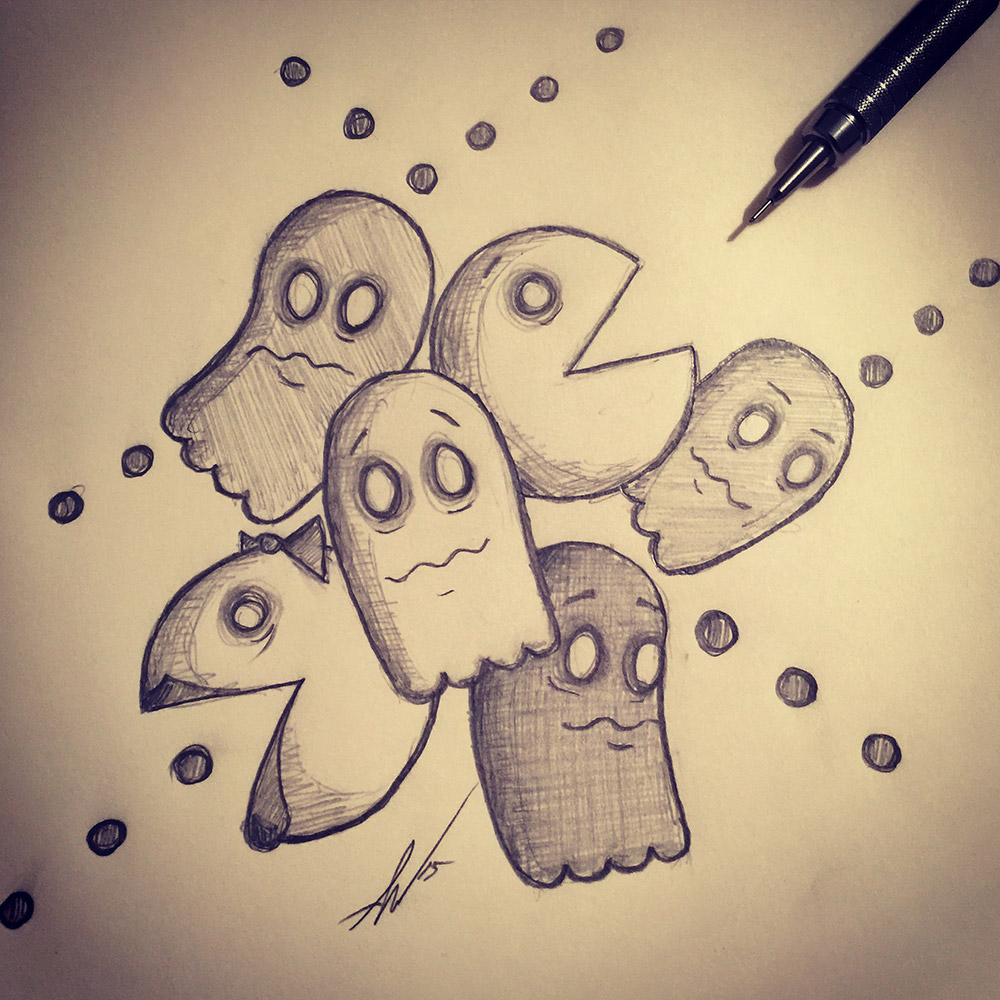 The Pac-Man Crew Author Augiewan Date Comments: Leave a comment The gang’s all here… Drew the Pac-Man crew today. Sketch-A-Day 128