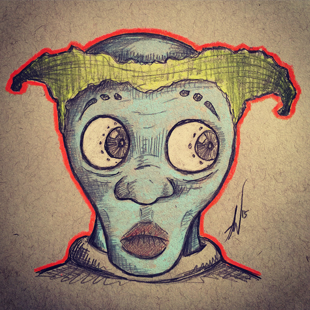 Blue Skinned Yellow Haired Big Eyed Alien Dude Author Augiewan Date Comments: Leave a comment Even blue skinned yellow haired big eyed alien dudes can have male pattern baldness issues… Sketch-A-Day 147