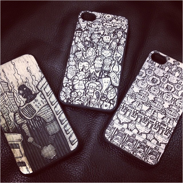 The design was my “Toy Robots” illustration that I’ve yet to post to this site. I’ve posted links to some images of the drawing process for that design and a better shot of the phone case a little further down. You too can purchase this case at Carved. Here’s my profile there.