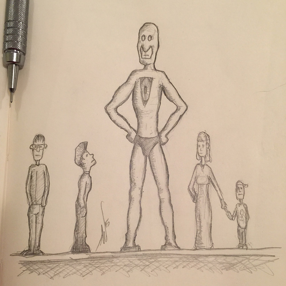 Day 3. The native people on this planet are small. Very small. I believe they see me as odd. I’ve continue to act as though there is nothing to see, tried to blend in, but I may have to make some additional changes to my attire. Through my research so far, I have concluded that I could be either what they call a super hero or play a game that they call basketball. Sketch-A-Day 169