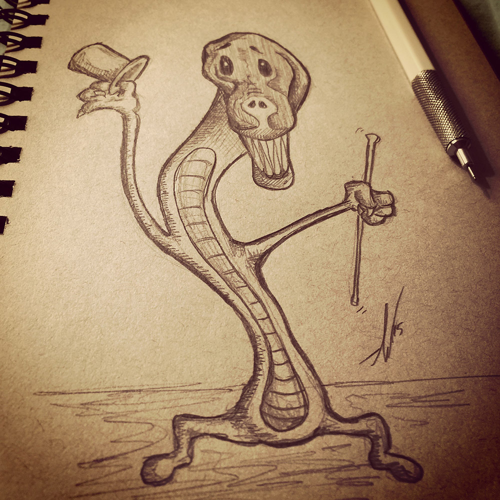 Vlastricks, lizard-like beasts from Vlas 9, are vicious by nature. Extreme caution should be used if you confront one. If by chance you have an old show tune recording that you can play, you may escape in one piece as they are suckers for good old show tunes… Sketch-A-Day 181