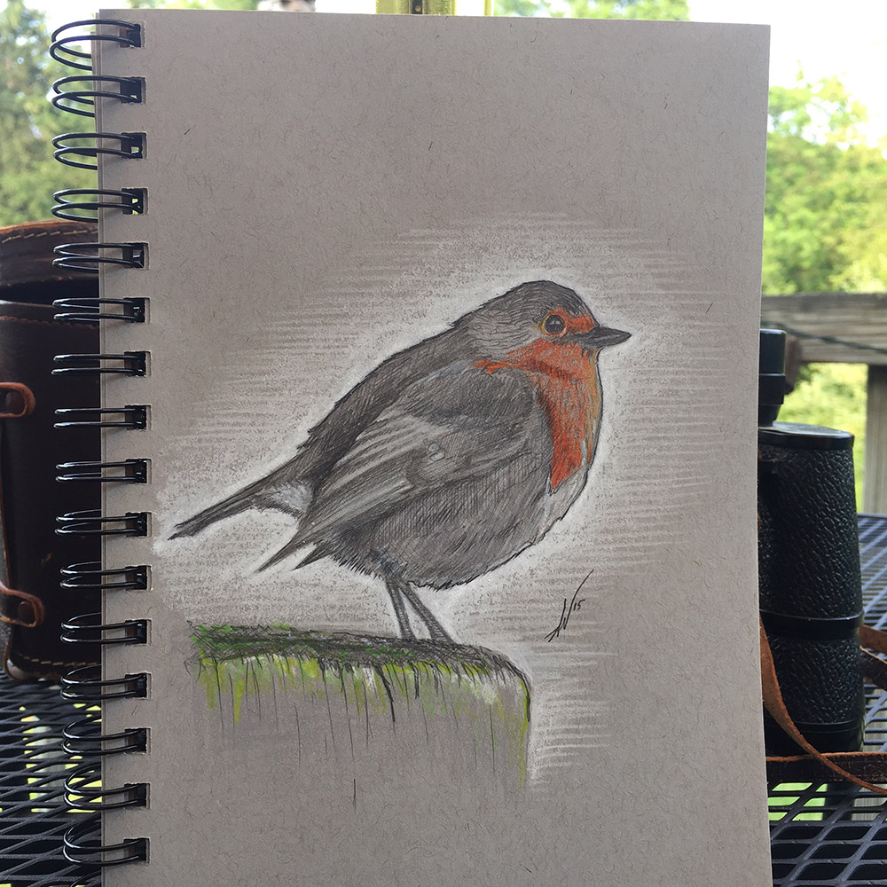 To Be A Robin Or Not To Be A Robin Author Augiewan Date Comments: Leave a comment M’Love was out on the back deck reading & bird watching, so I sat out with her to draw a Robin. At least I thought it was. In retrospect, I’m unsure. I thought robins had red bellies. Anyone have some clarification on this? Sketch-A-Day 186 Close-up. What kind of bird is this after all?